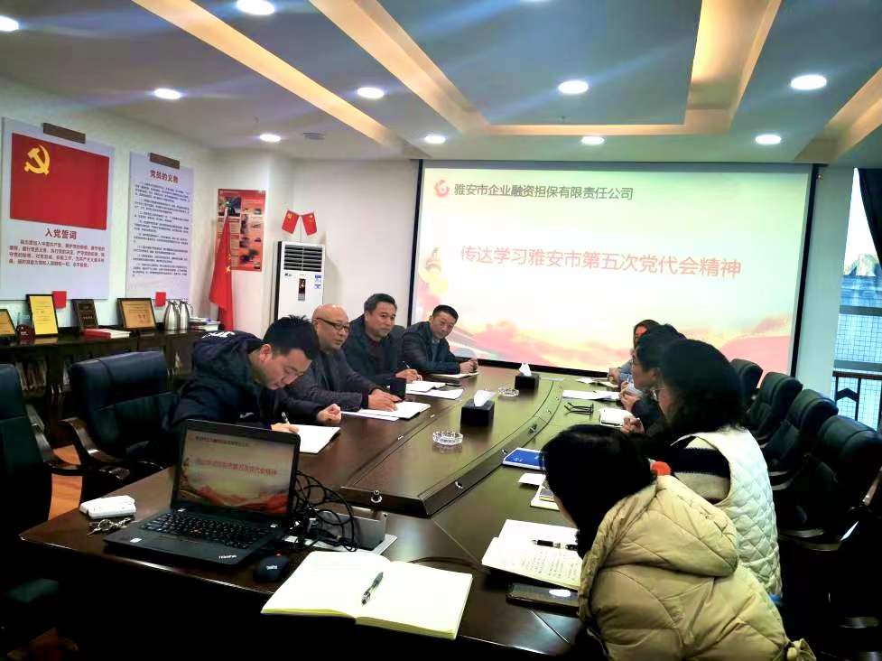 12月24日,市擔(dān)保公司召開支委(擴大)會,專題傳達學(xué)習(xí)雅安市第五次黨代會精神,并就貫徹落實情況進行安排部署。市擔(dān)保公司黨支部書記、董事長尹福健主持會議。