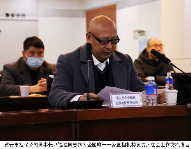 雅安市擔(dān)保公司董事長尹福健同志作為全國唯一一家直擔(dān)機構(gòu)負責(zé)人在會上作交流發(fā)言